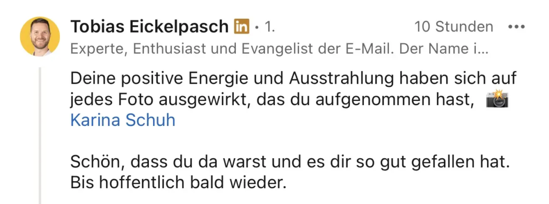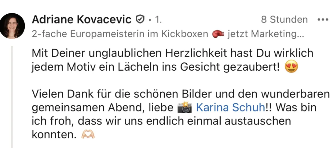 LinkedIn wurde für mich kein Zahlen-Spiel. Es wurde ein Ort, an dem Menschen sagen: Ich erkenne dich wieder. Ich weiß, wofür du stehst. Und das ist für mich echte Sichtbarkeit.